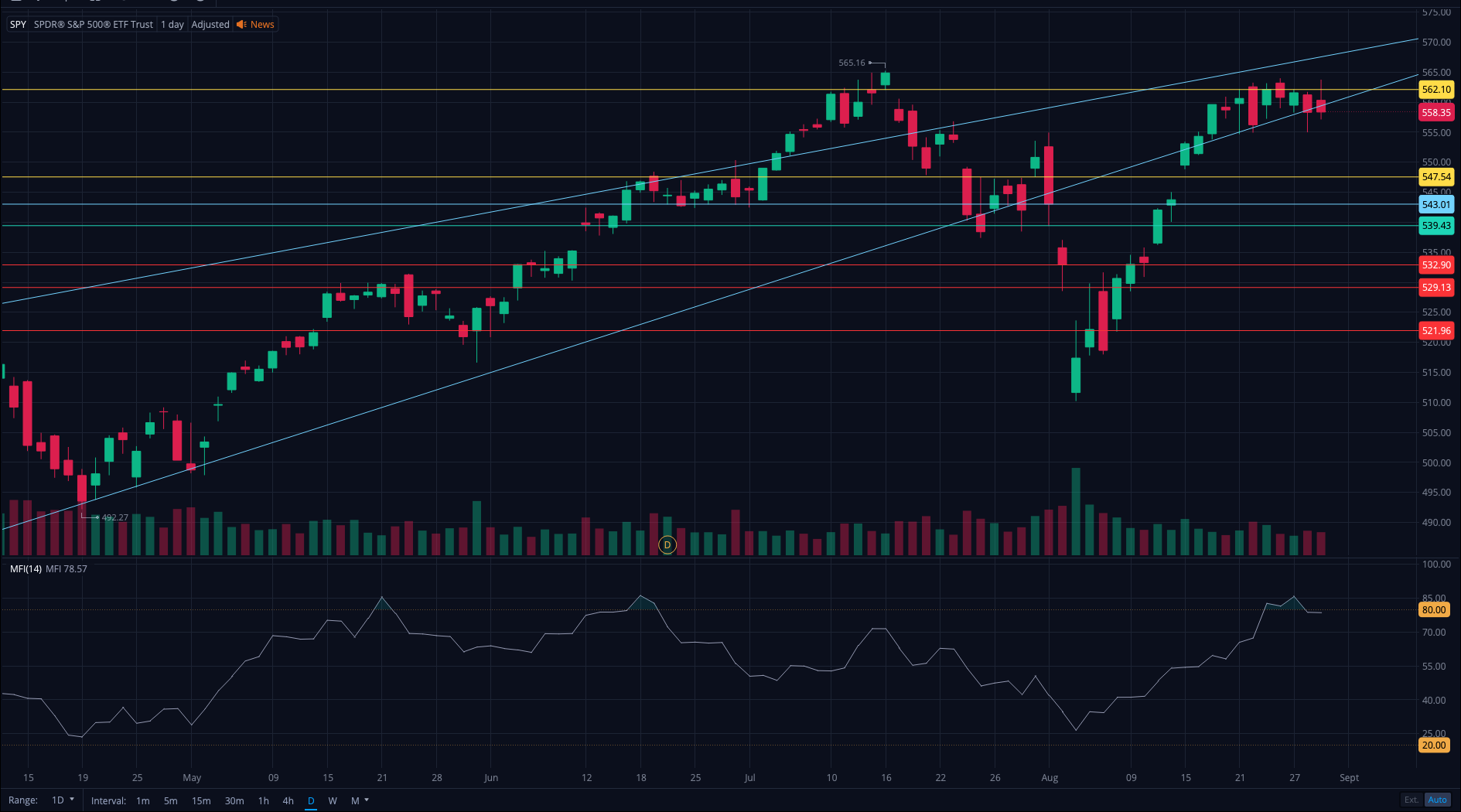 In a shocking twist after the already surprising drop yesterday, SPY recovered completely but still rejected 562. Likewise, NVDA was up premarket but sold off to retest 116 support, closing slightly above it. QQQ followed a similar pattern but didn’t quite reach lows after yesterday’s after-hours.
