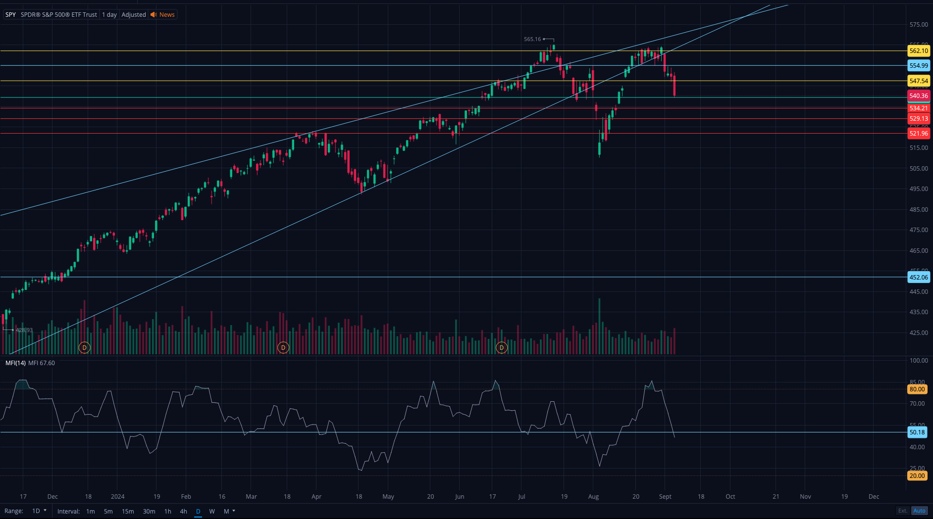 All that to say, election cycles have a substantial impact on how markets respond, but this market rally is already stretched to extremes. Daily MFI is looking like it’s going to continue pushing past 50, but we’ll see tomorrow. If SPY finds support here, a bounce is likely. If not, the trend is officially changing and any rally is an opportunity for me to continue adding short positions.