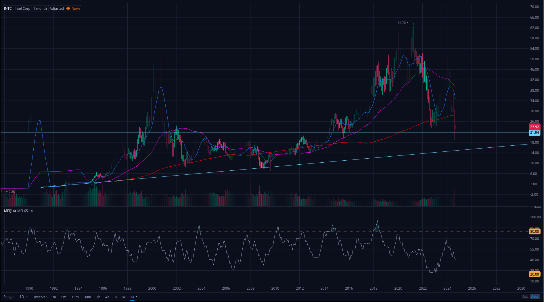 Intel has been publicly traded since 1980, with an adjusted all-time high of about $62 in 2021. It’s the type of company we look for: long-standing businesses that have fallen out of favor but still hold critical assets.